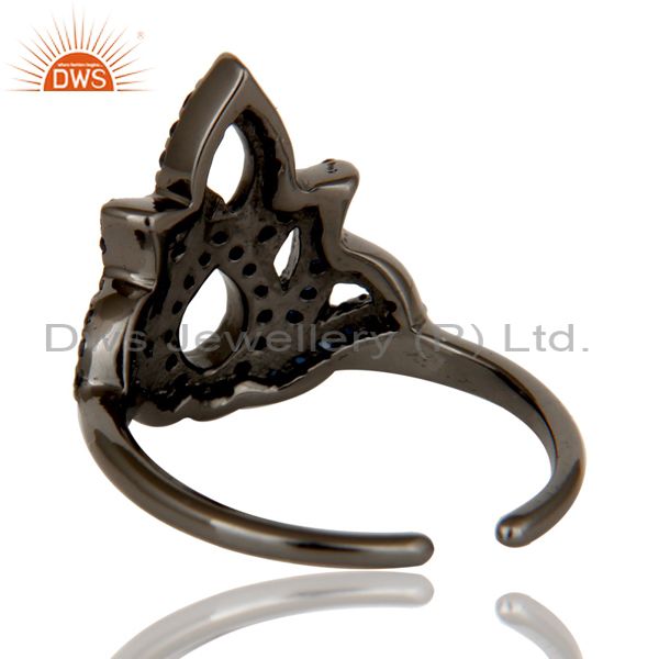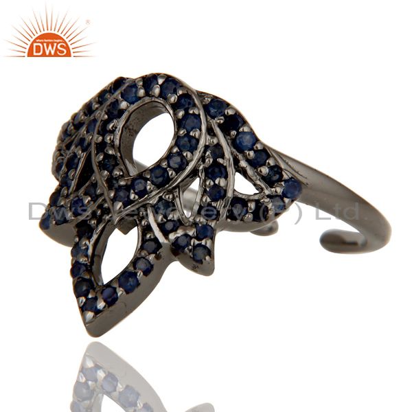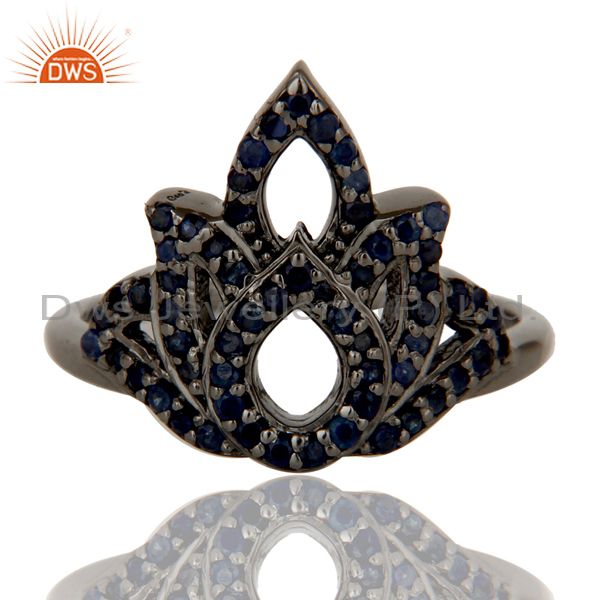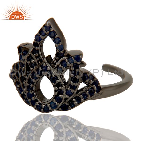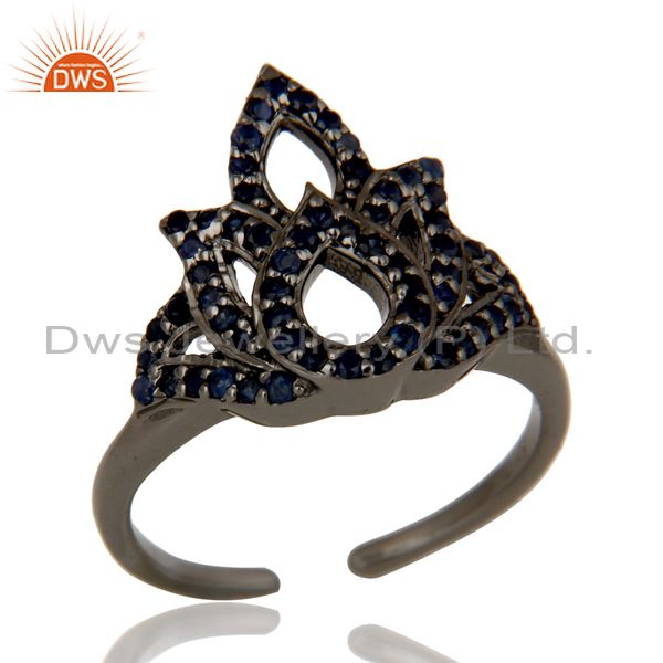 Blue Sapphire Black Oxidized Sterling Silver Crown Midi Ring