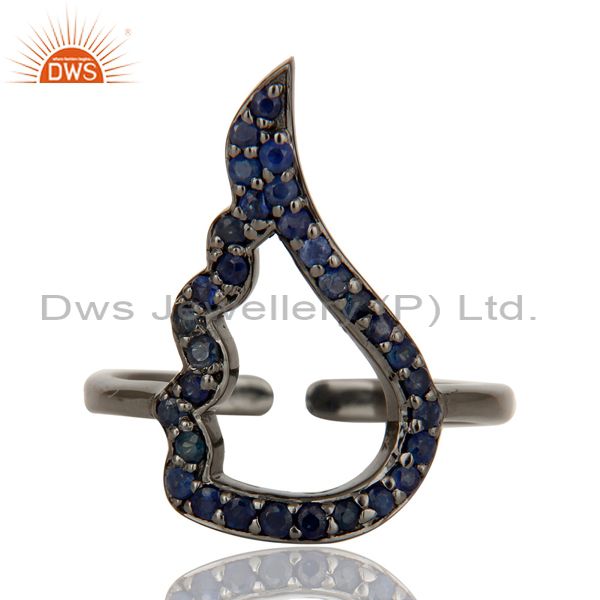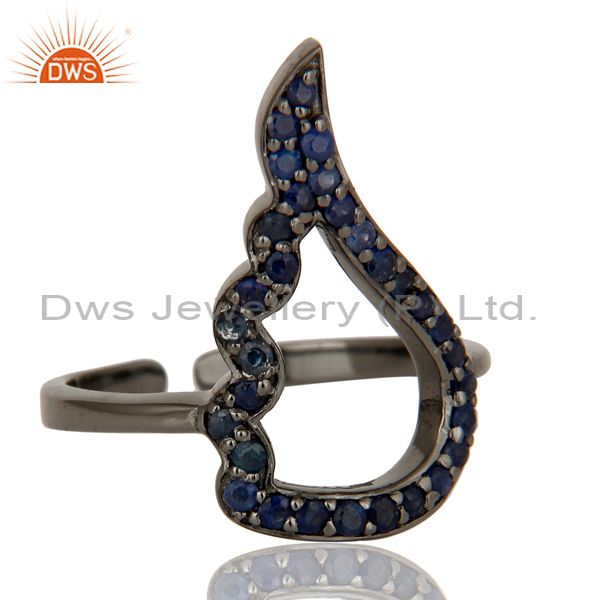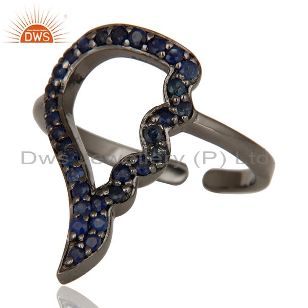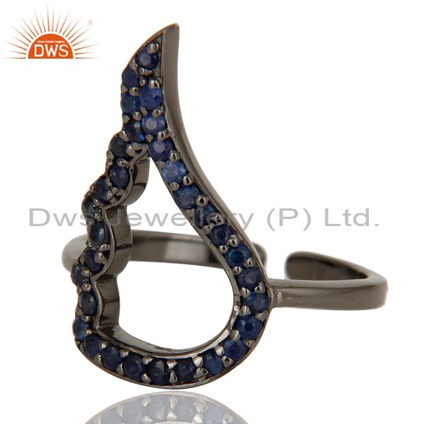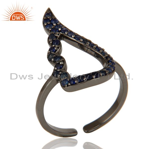 Blue Sapphire Black Oxidized Sterling Silver Midi Ring