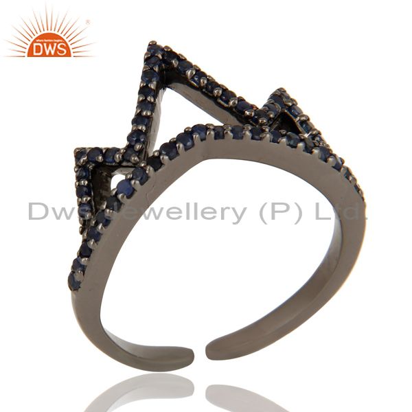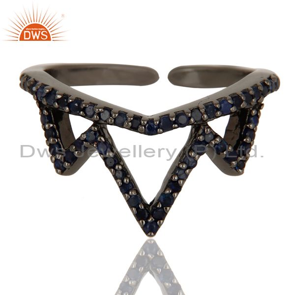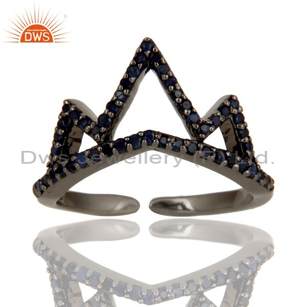 Blue Sapphire Sterling Silver Black Oxidized Crown Design Midi Ring