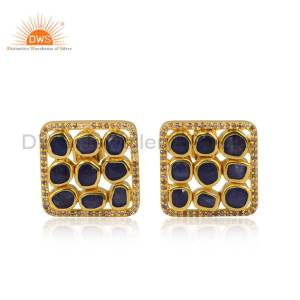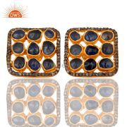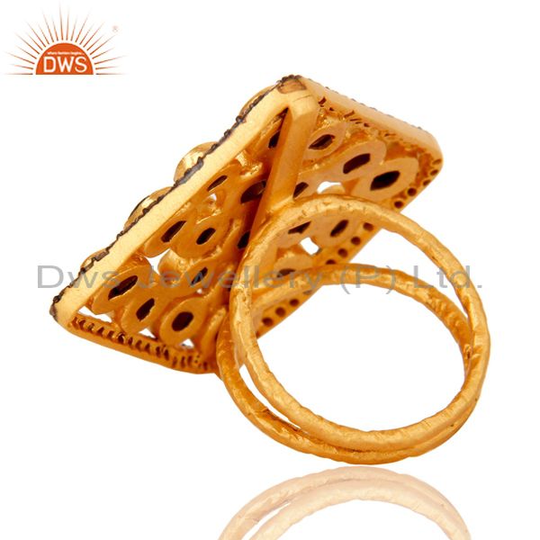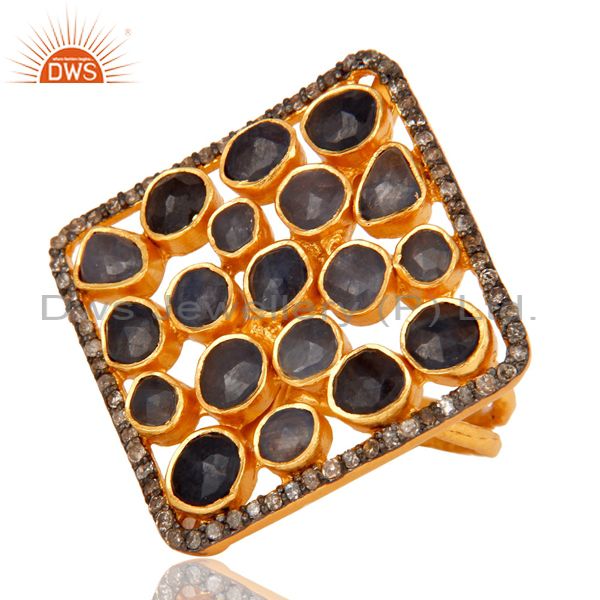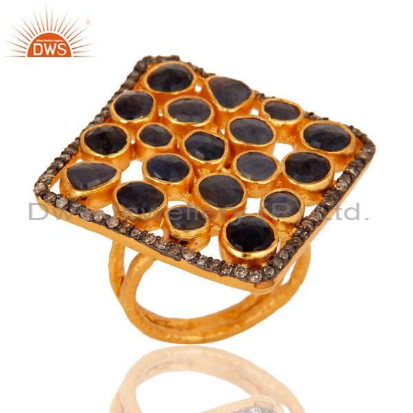 Blue Sappire 18K Gold Plated Plated On Sterling Silver Ring With Diamond