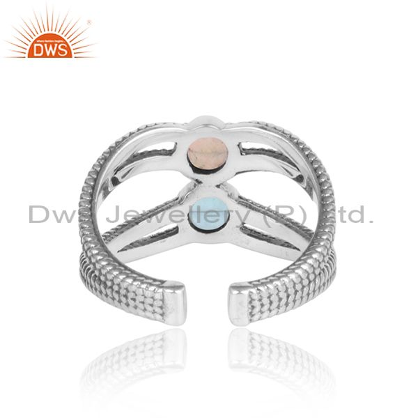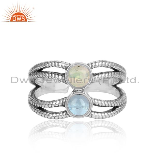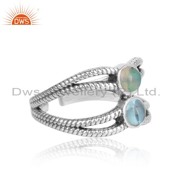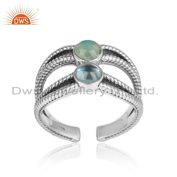 Blue Topaz & Ethiopian Opal Split Shank Adjustable Ring