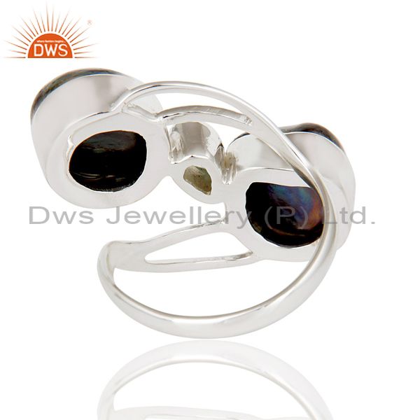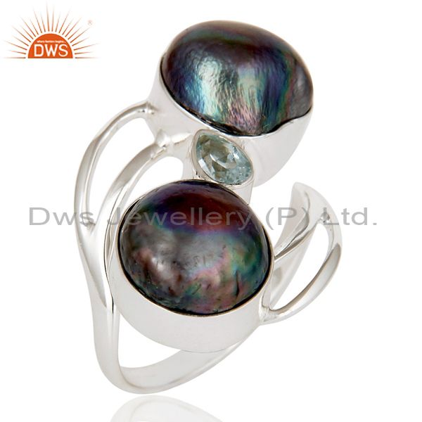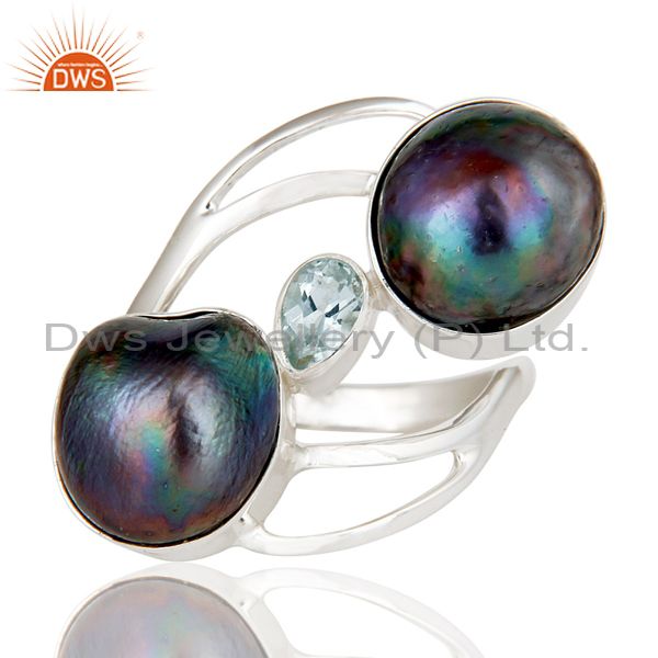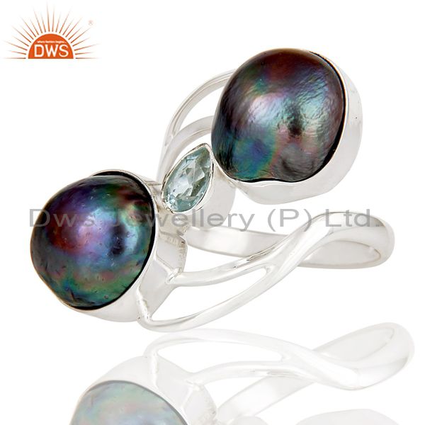 Blue Topaz & Fresh Water Pearl 925 Sterling Silver Statement Designer Ring