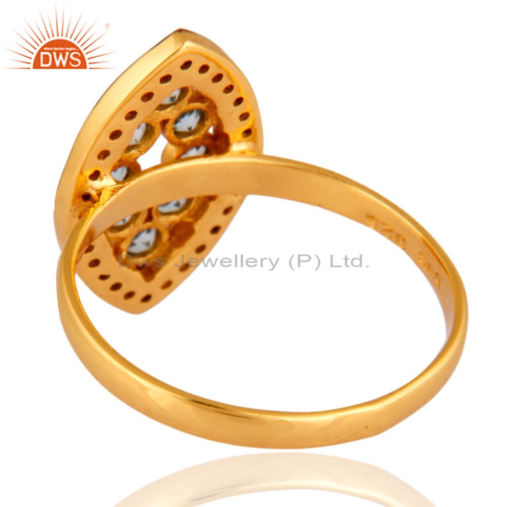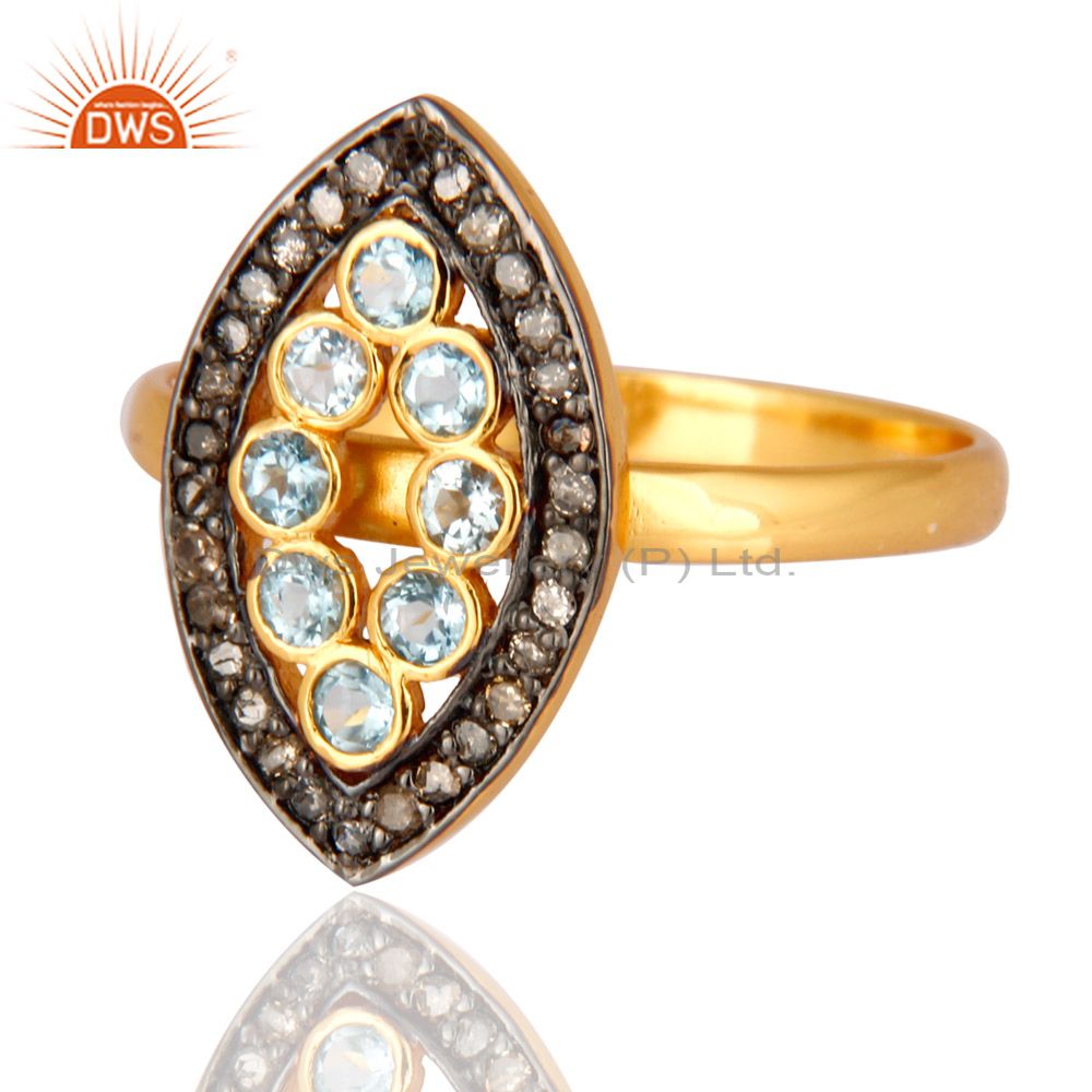 Blue Topaz And Pave Diamond Designer Ring In 18K Yellow Gold On Sterling Silver