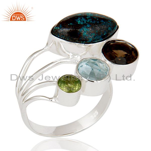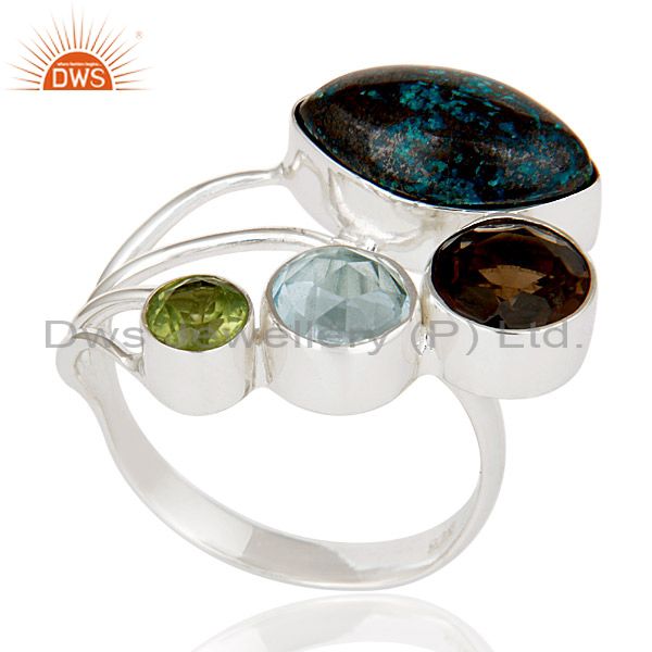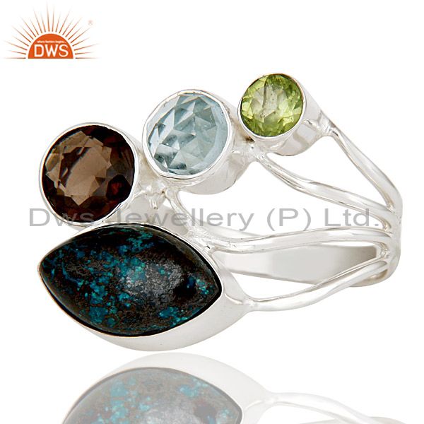 Blue Topaz, Chrysocola, Peridot & Smokey Topaz Sterling Silver Statement Ring