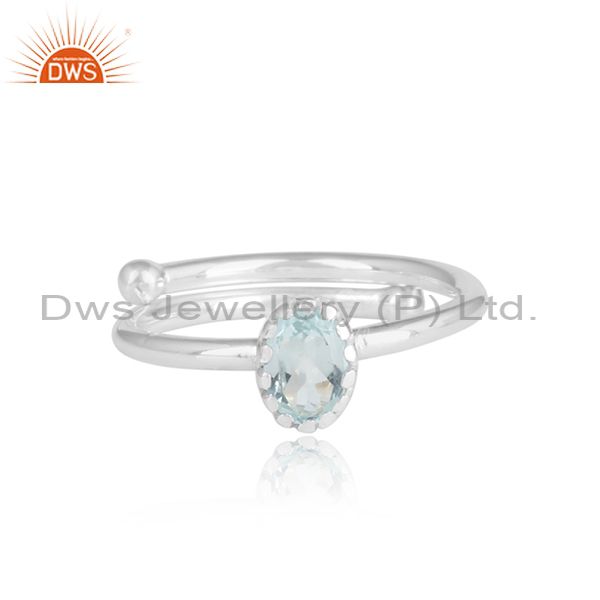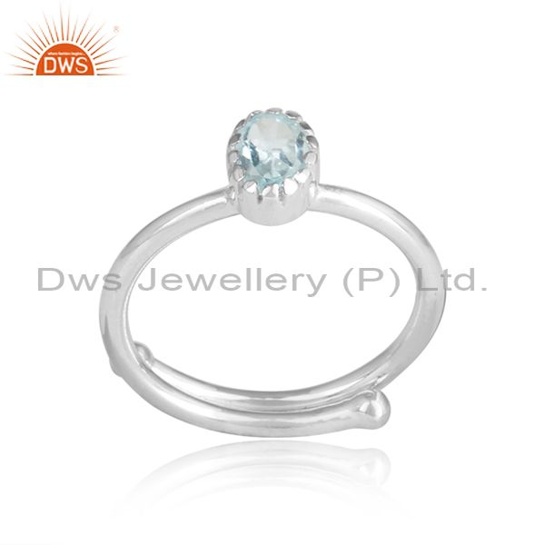 BLUE TOPAZ CUT sterling silver white adjustable ring