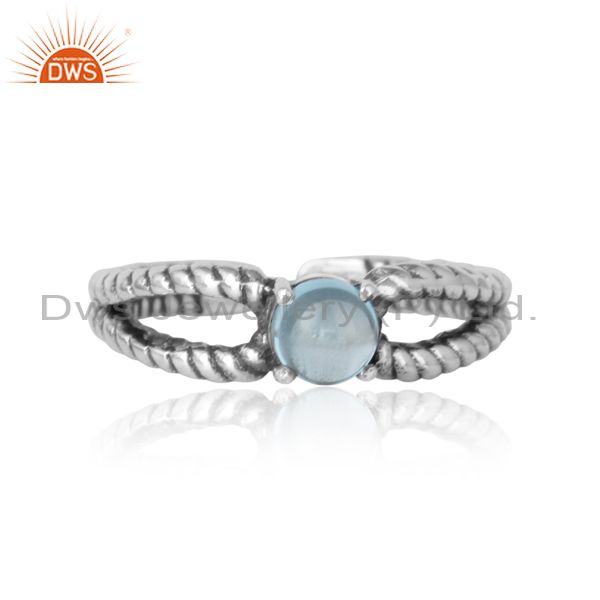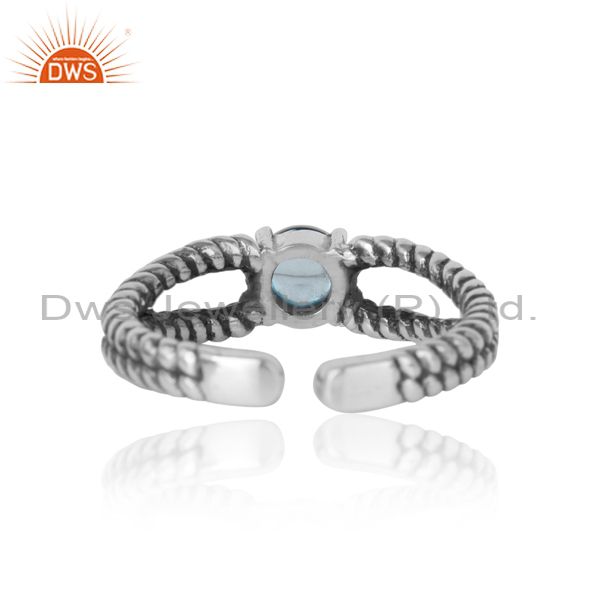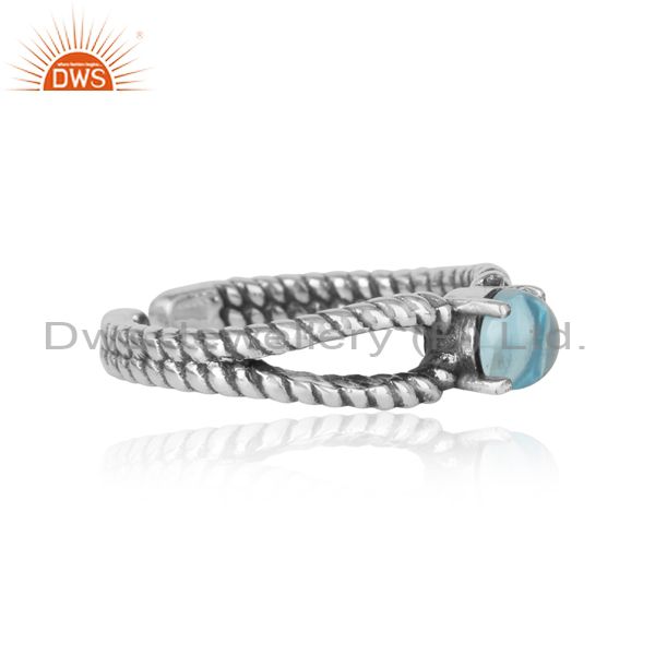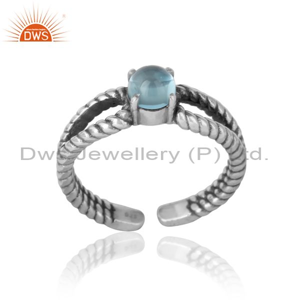 Blue Topaz Designer Twisted Ring in Oxidized Silver 925