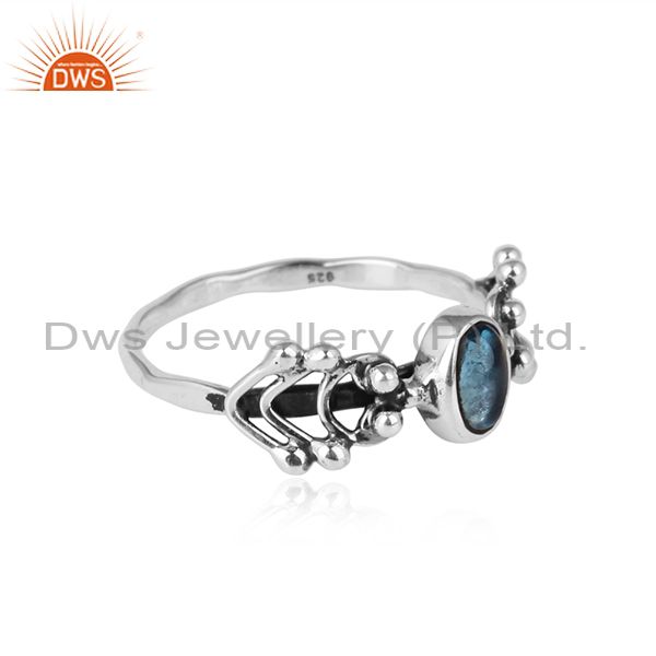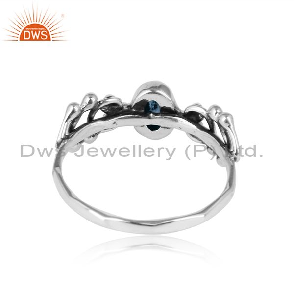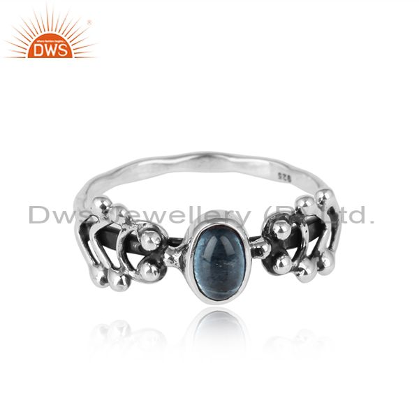 Blue Topaz Gemstone Designer 925 Sterling Silver Oxidized Rings