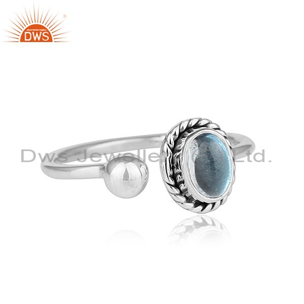 Blue Topaz Gemstone Oxidized Sterling Silver Handmade Rings Jewelry