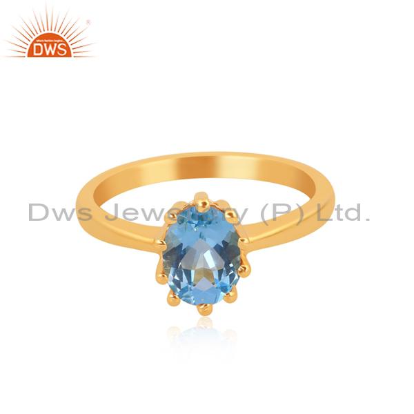 Blue Topaz Gold Plated Engagement Ring - Elegant & Timeless