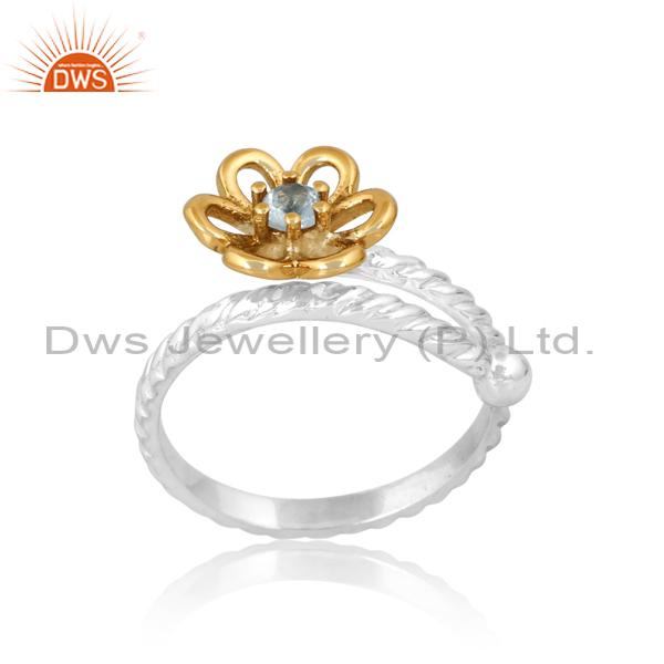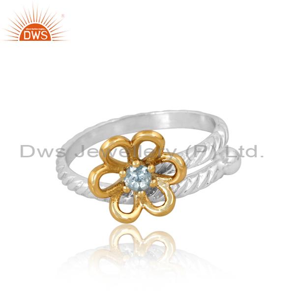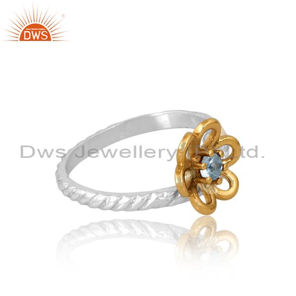 Blue Topaz Gold Plated Flower Ring: Perfect For Engagement!
