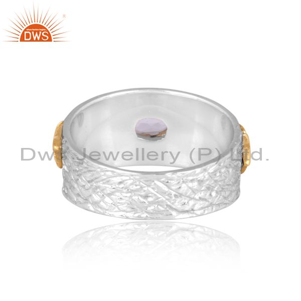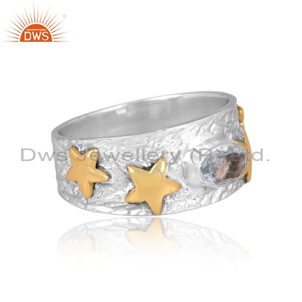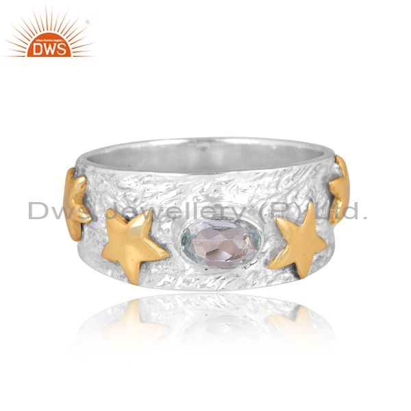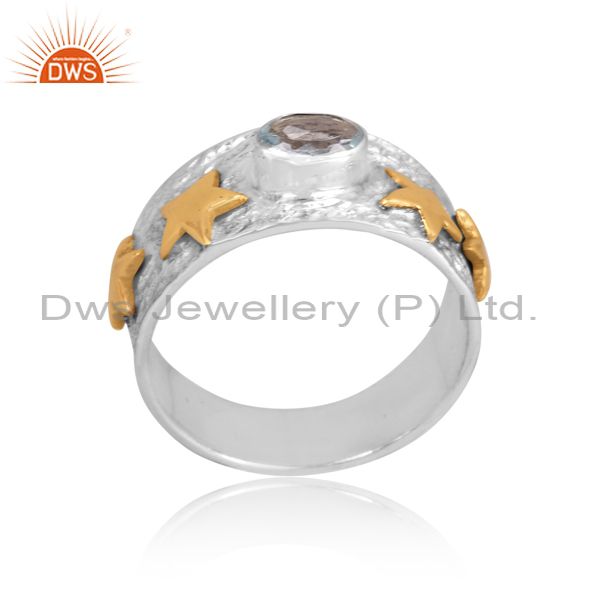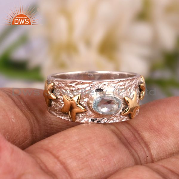 Blue Topaz Set Fine Sterling Silver Handmade Textured Ring