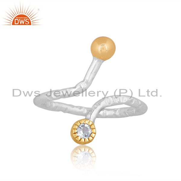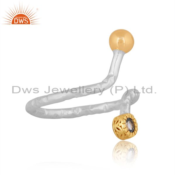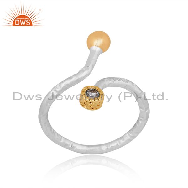 Blue Topaz Set Gold On Fine Silver Handmade Designer Ring