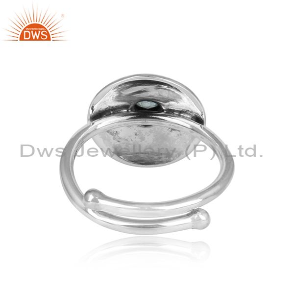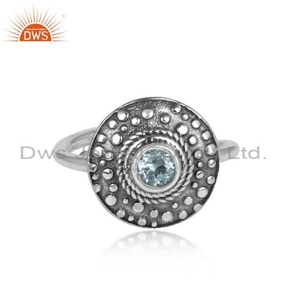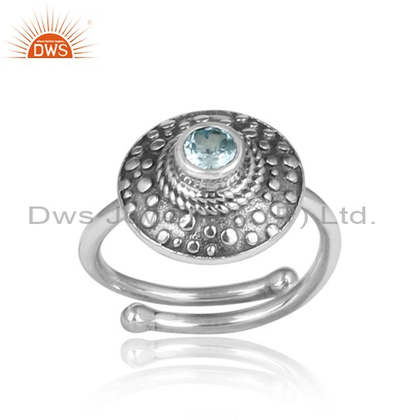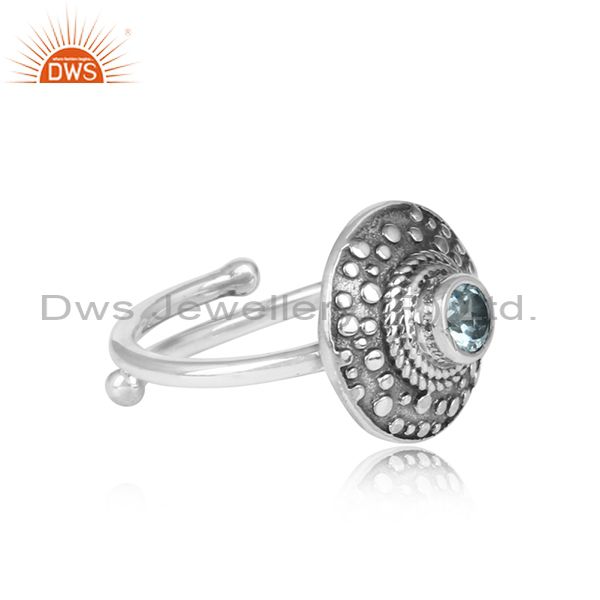 Blue Topaz Set Oxidized 925 Silver Ethnic Adjustable Ring