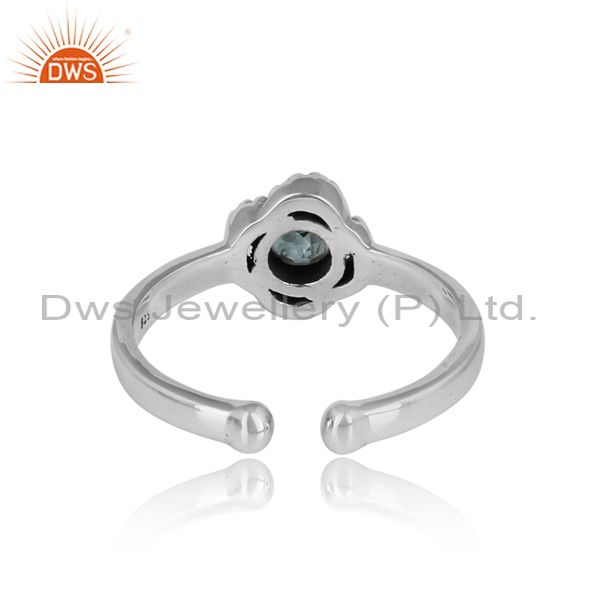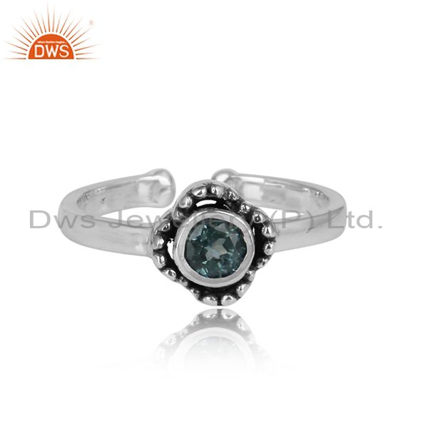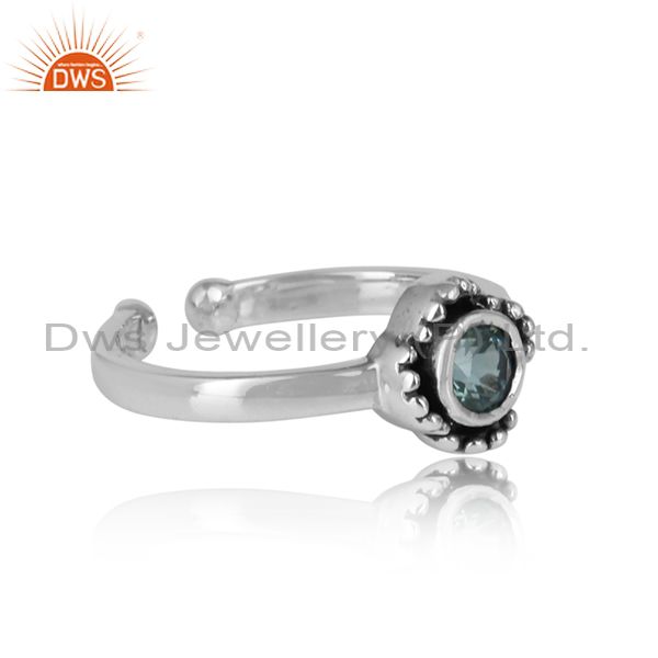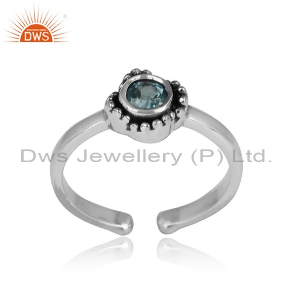 Blue Topaz Set Oxidized Adjustable Sterling Silver Ring