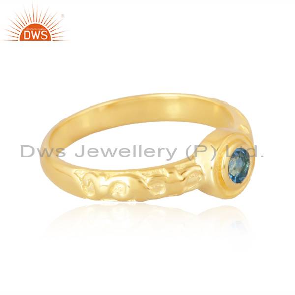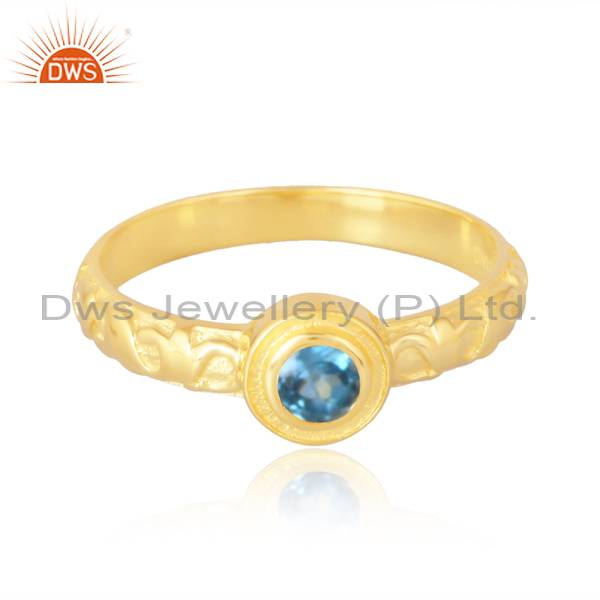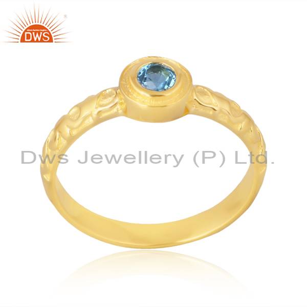 Blue Topaz Silver 18K Gold Plated Ring Palladium Gold