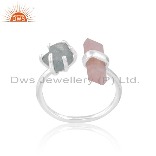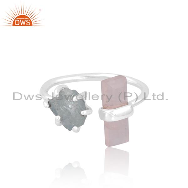 Blushing Beauty: Aquamarine And Rose Quartz Engagement Ring
