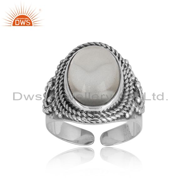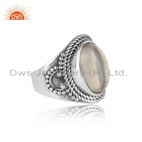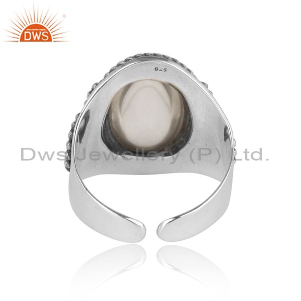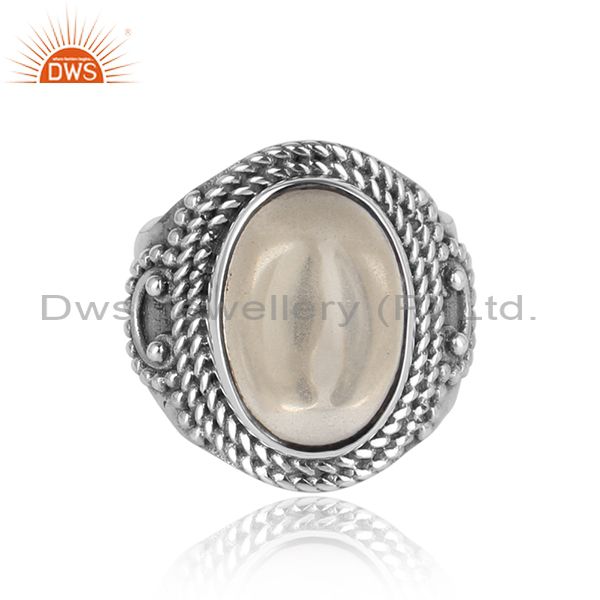 Bold Designer Ring in Oxidized Silver 925 with Crystal Quartz