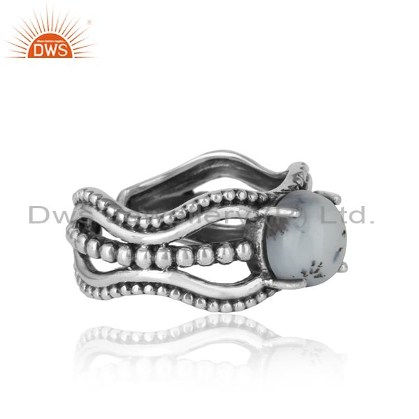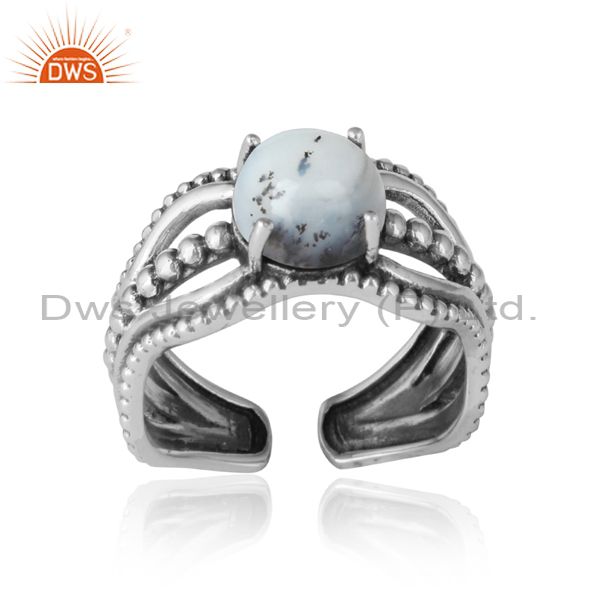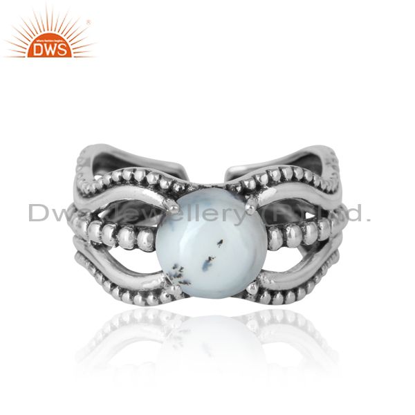 Bold Handmade Silver Ring in Oxidized Finish With White Howlite