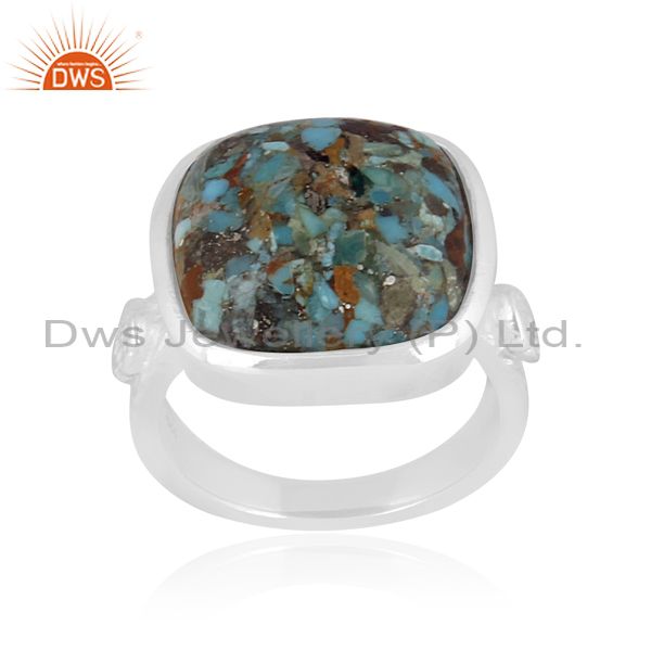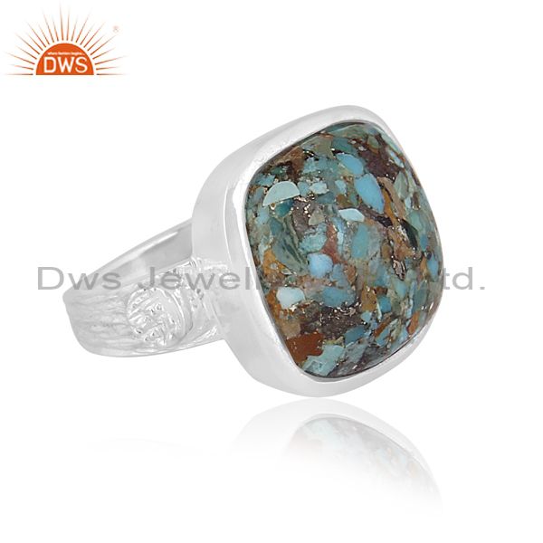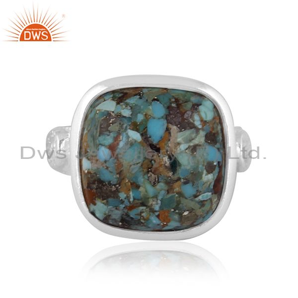 Boulder Turquoise Set Fine 925 Silver Abstract Designer Ring