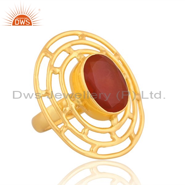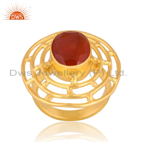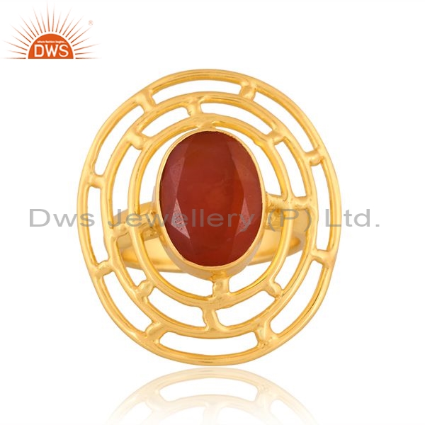 Brass 18K Gold Ring With Carnelian Oval Cut
