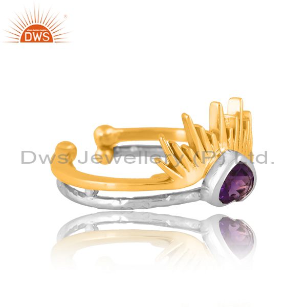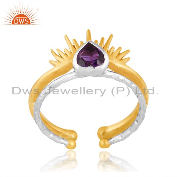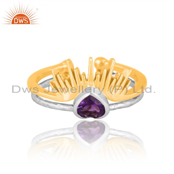 Brass Gold And White Ring With Amethyst Heart Cut And Pita