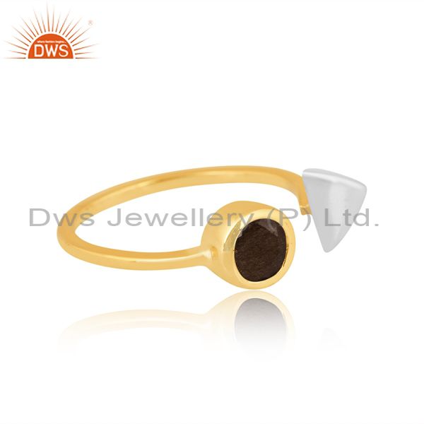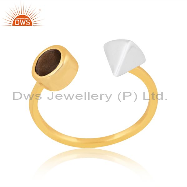 Brass Gold And White Ring With Gold Sheen Obsidian