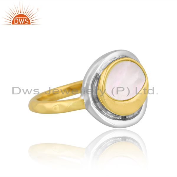 Brass Gold And White Ring With Mother-Of-Pearl Coin