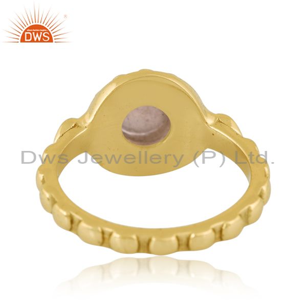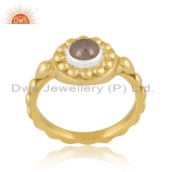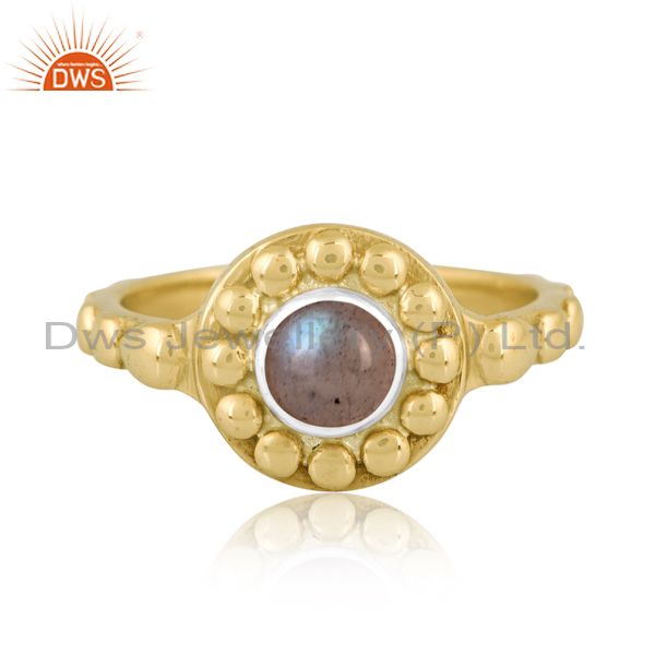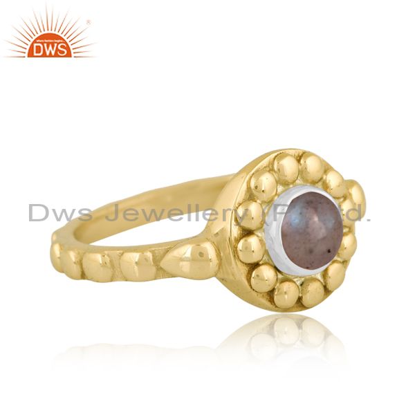 Brass Gold Flower Ring With A Labradorite Cabushion Stone