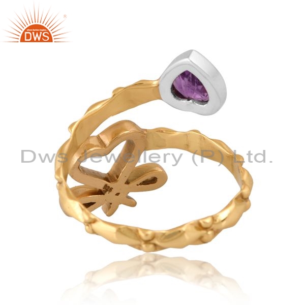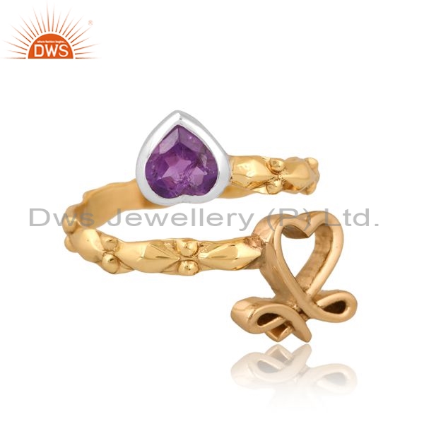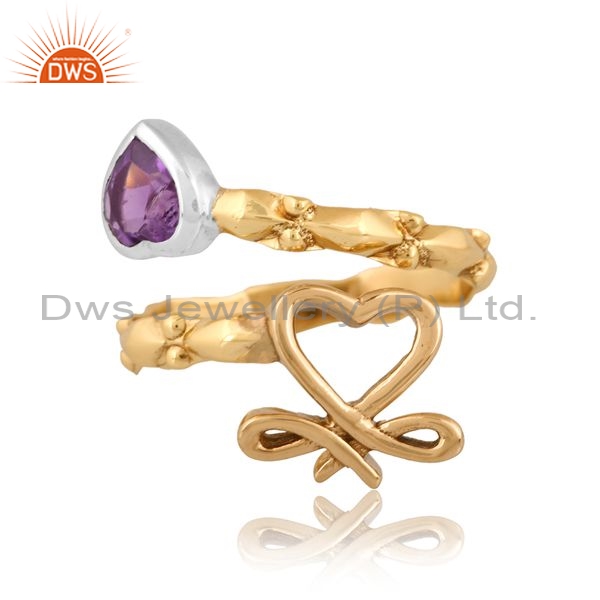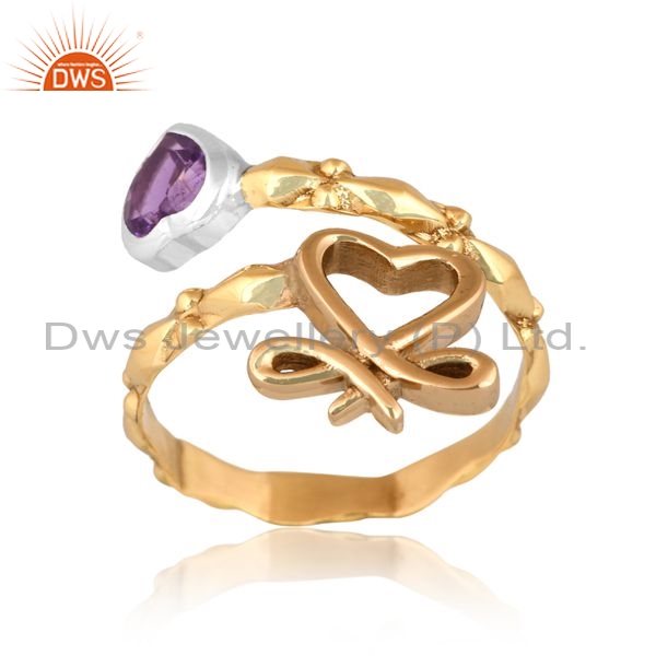 Brass Gold Ring With Amethyst Heart Stone
