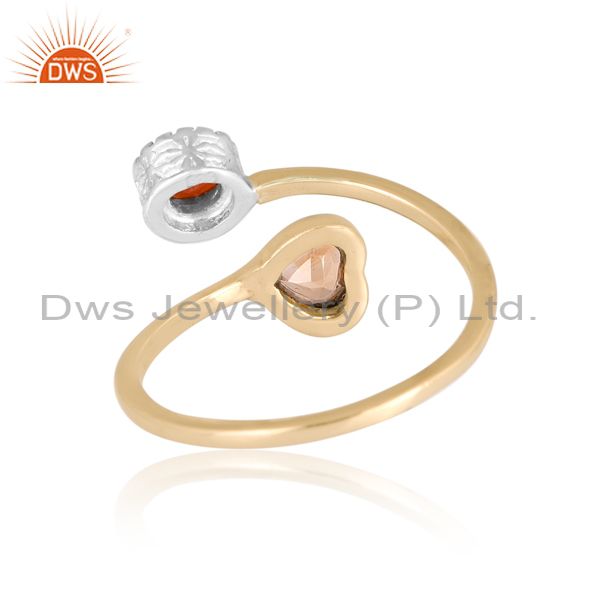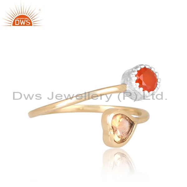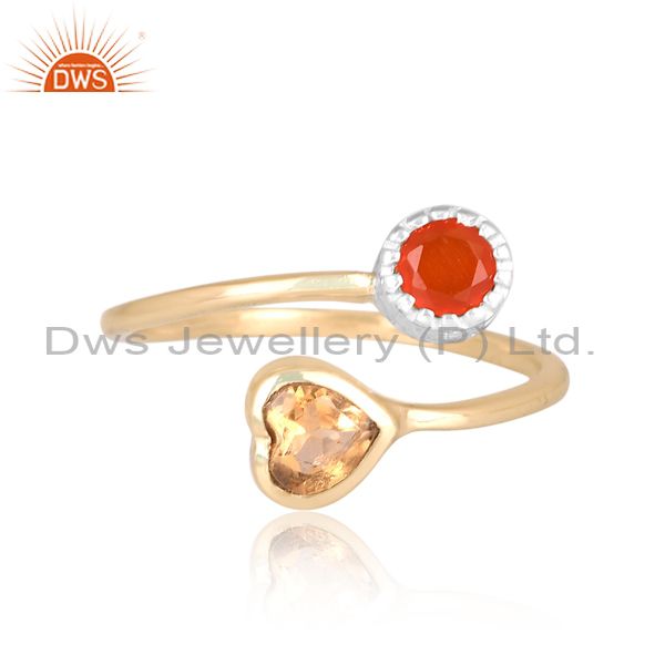 Brass Gold Ring With Citrine And Red Onyx Heart Shaped Stone