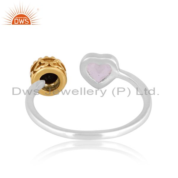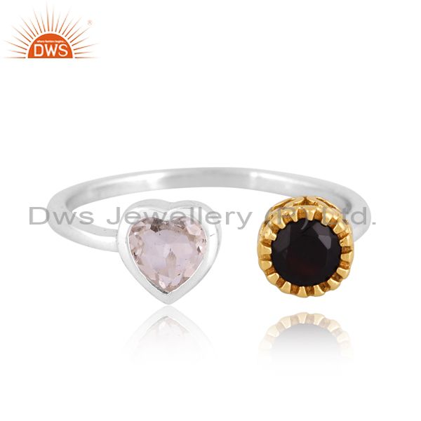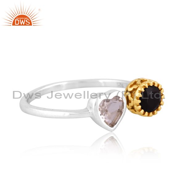 Brass Gold Ring With Crystal Heart Shaped Black Onyx Gem