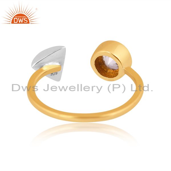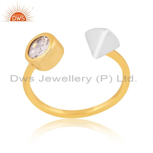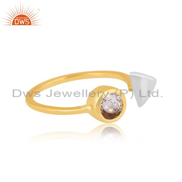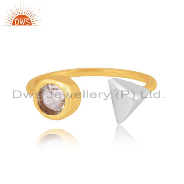 Brass Gold Ring With Crystal Stone And Silver Triangle