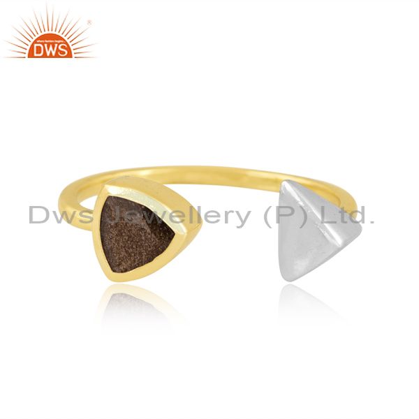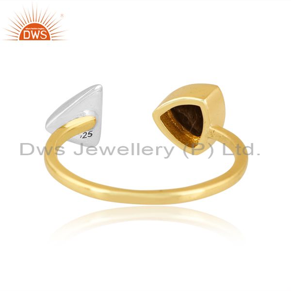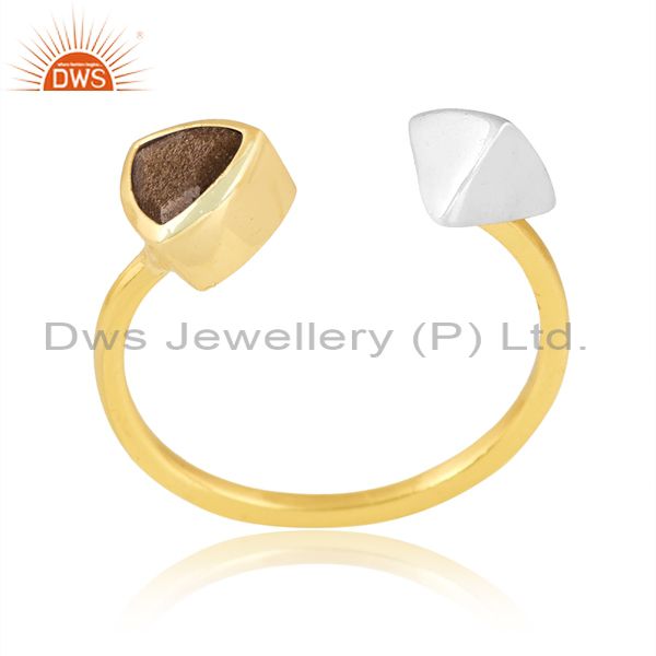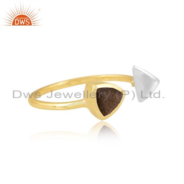 Brass Gold Ring With White Triangle And Obsidian Stone