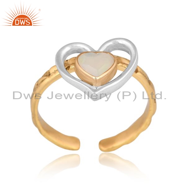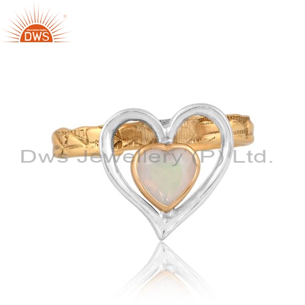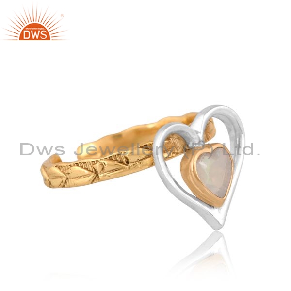 Brass Gold White Ring With Heart Cut Ethiopian Opal