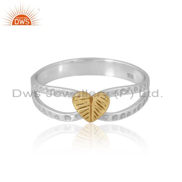 Brass Heart Leaf Sterling Silver Finger Ring For Girls