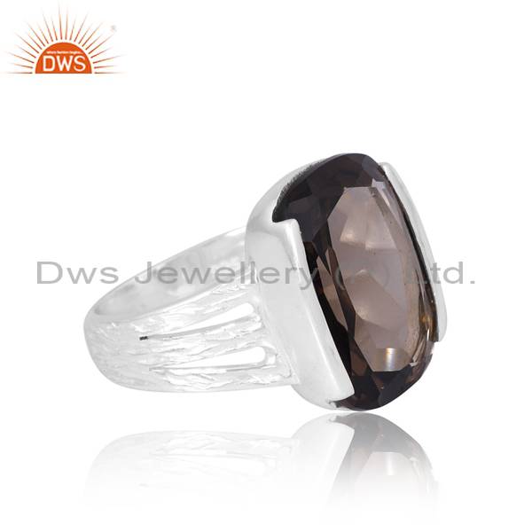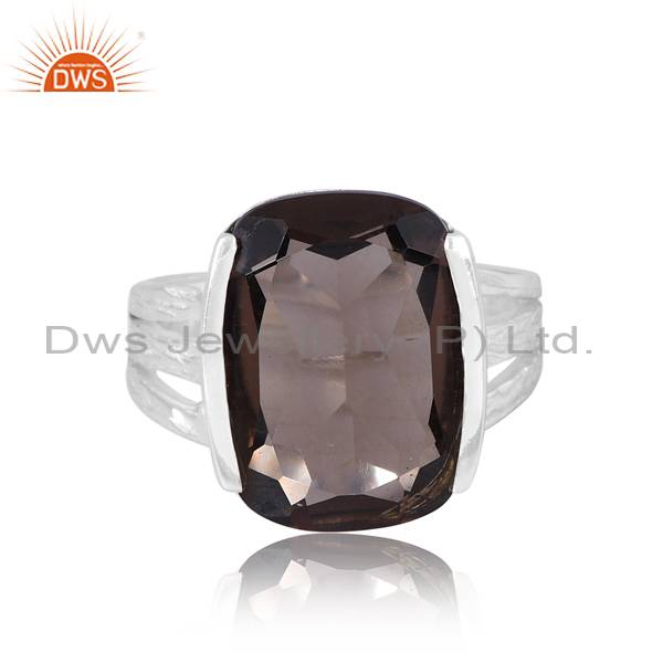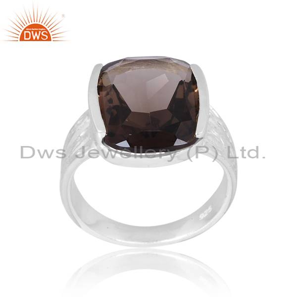 Breath Taking Smoky Cut Cushion Sterling Silver White Ring