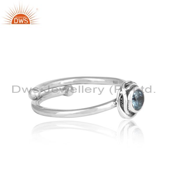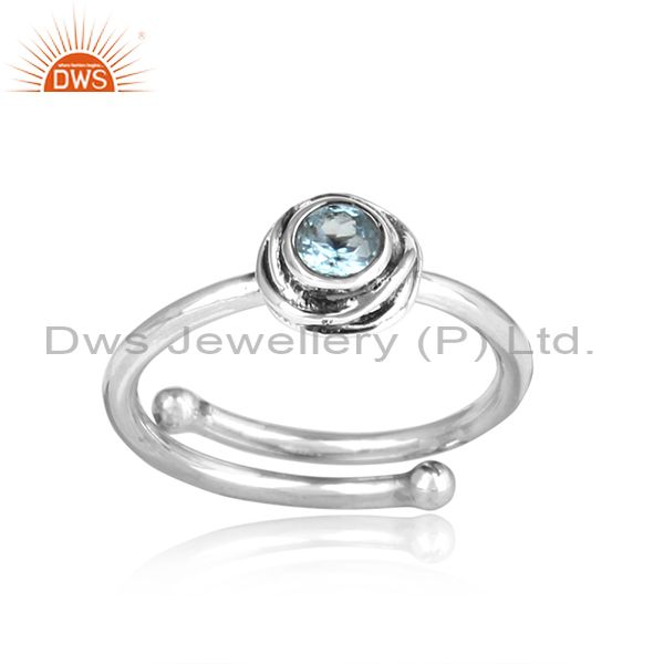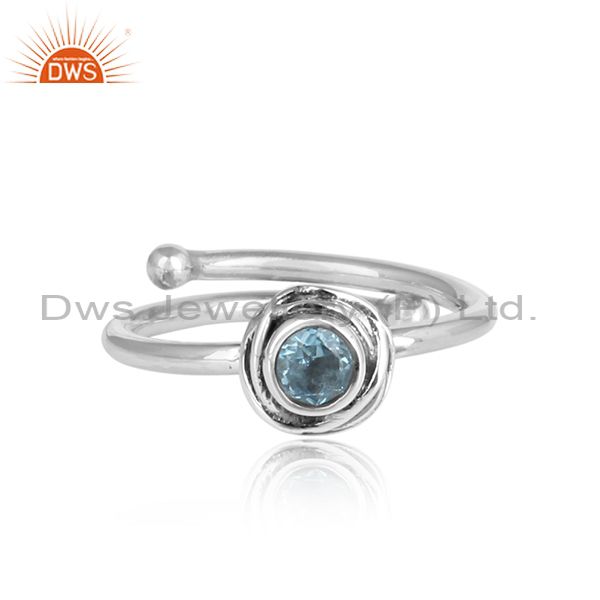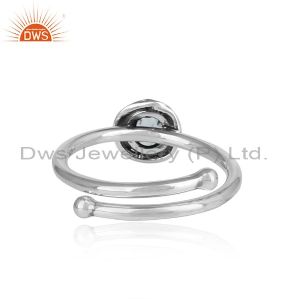Bright Blue Topaz Set Adjustable Oxidized 925 Silver Ring