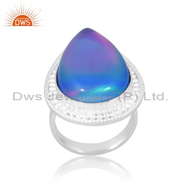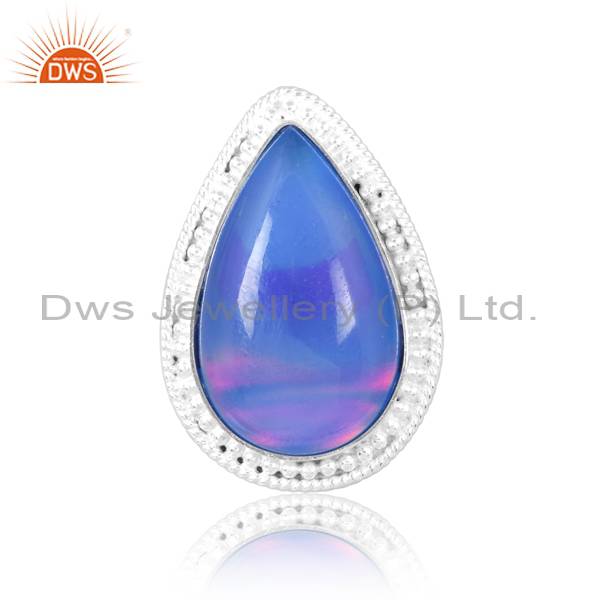 Cabushion Pear Cut Aurora Opal Blue Finger Ring For Girls