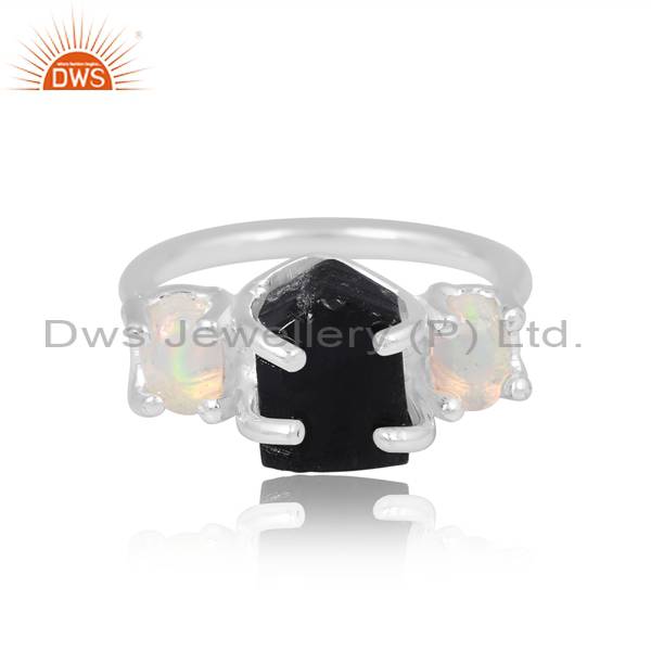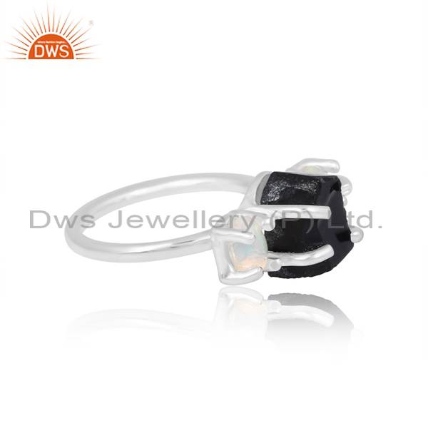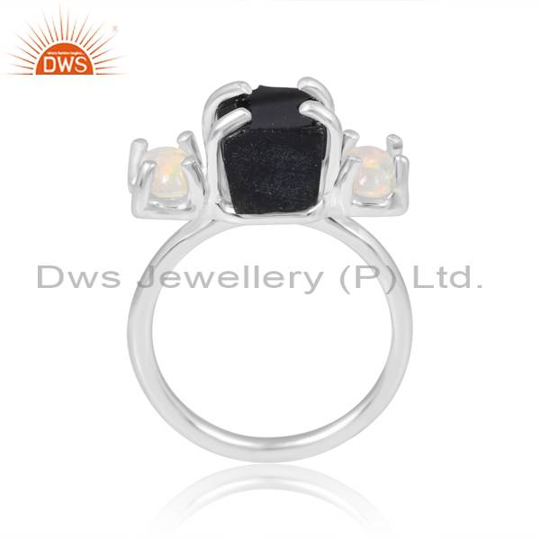 Captivating Contrast: Black Obsidian And Ethiopian Opal Ring