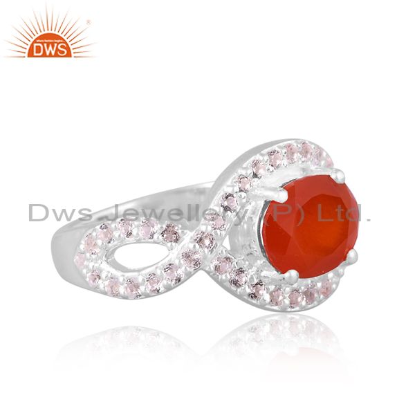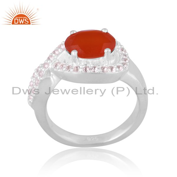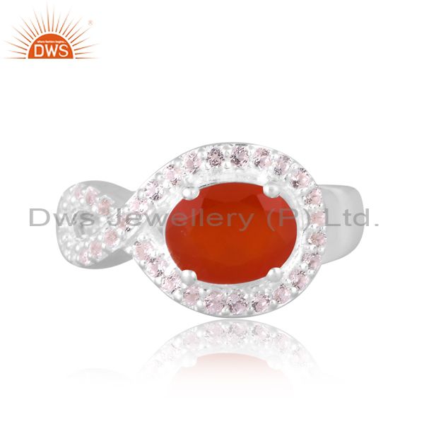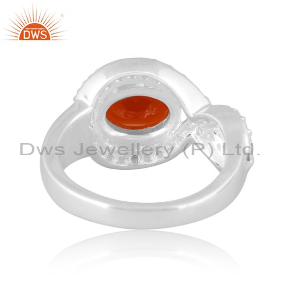 Carnelian And White Topaz Set Fine 925 Silver Statement Ring