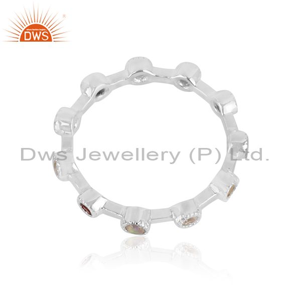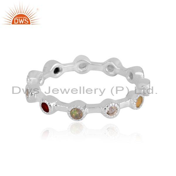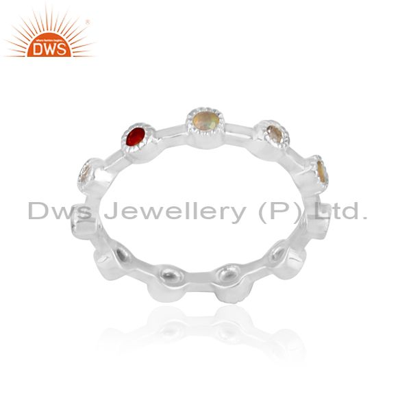 Carnelian, Ethiopian Opal, White Topaz Set Fine Silver Ring