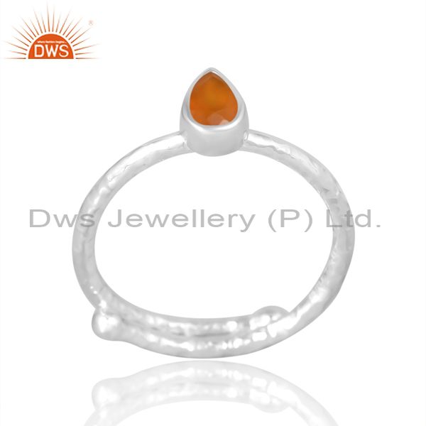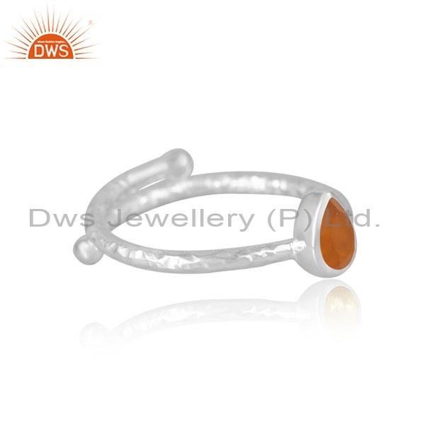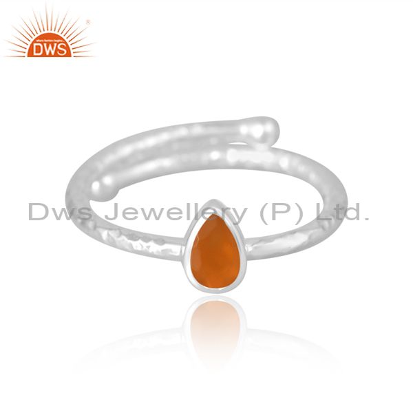 Carnelian Pear Cut Stone And Band For Women In Silver Metal