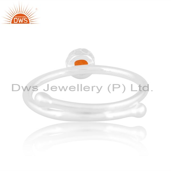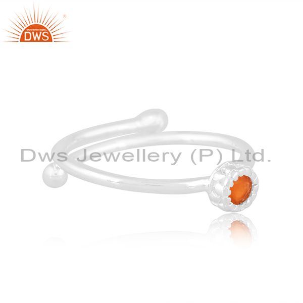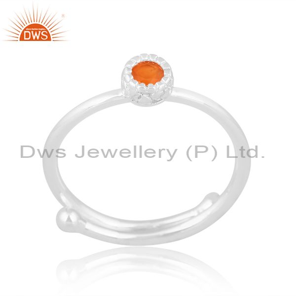 Carnelian Round Cut Stone On White Sterling Silver Ring