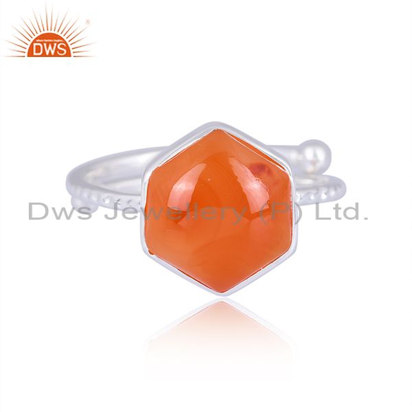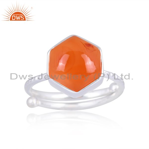 Carnelian Set Fine Sterling Silver Handmade Hexagonal Ring