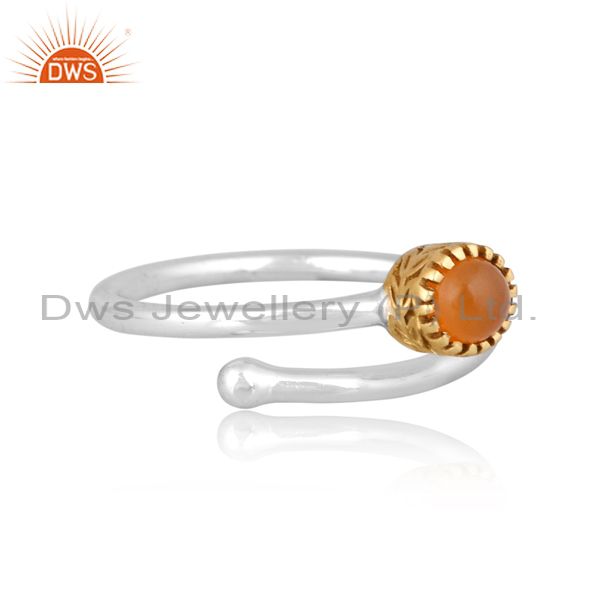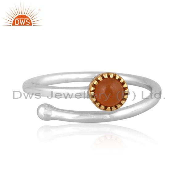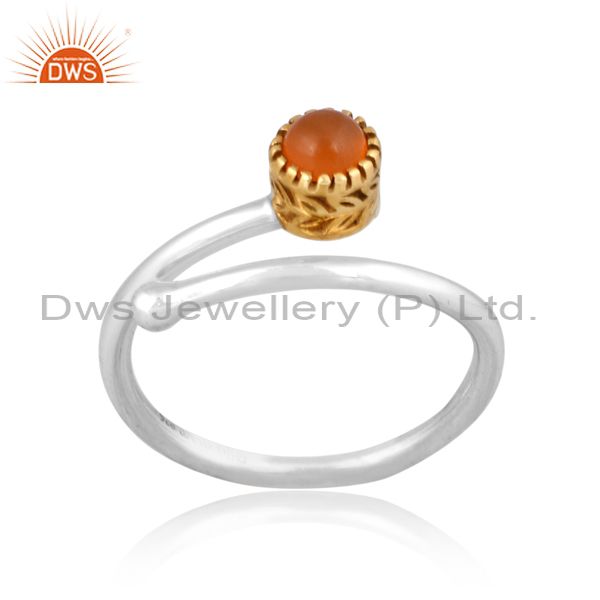 Carnelian Set Gold On Fine 925 Silver Crown Style Twist Ring