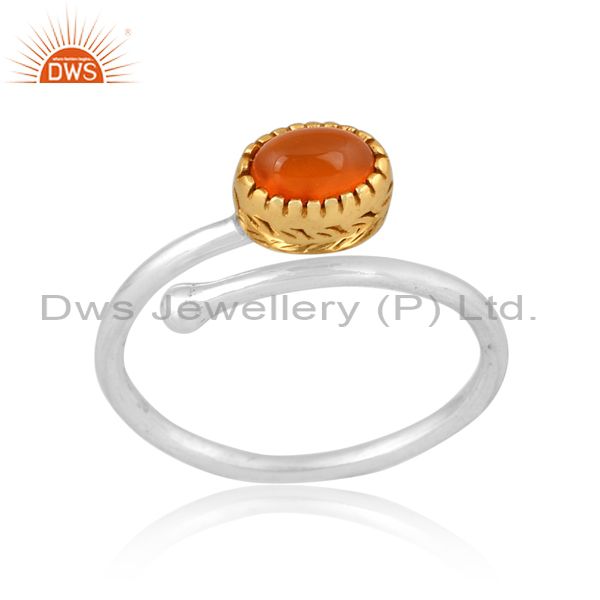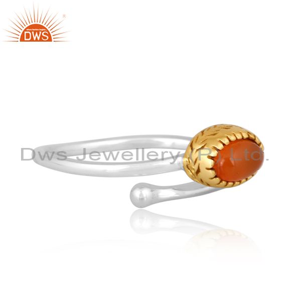 Carnelian Set Gold On Fine Silver Handmade Statement Ring