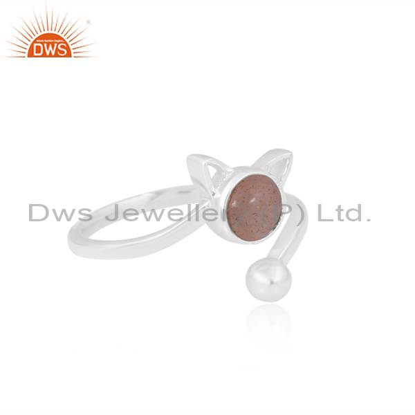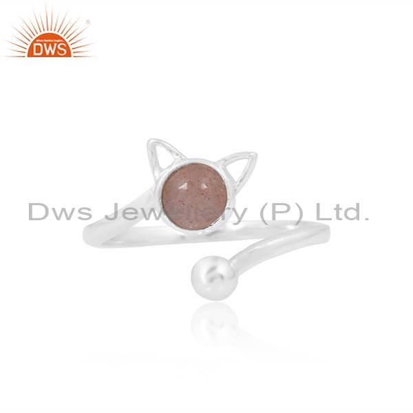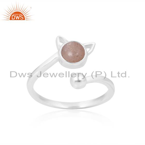 Cat Ring With Peach Moonstone: Delicate And Elegant Jewelry