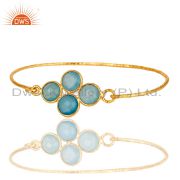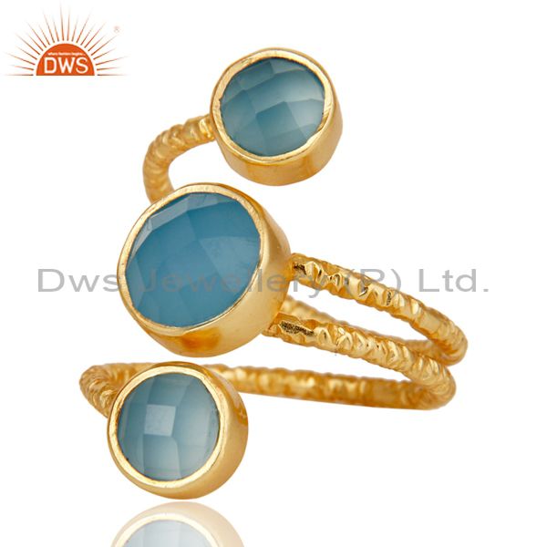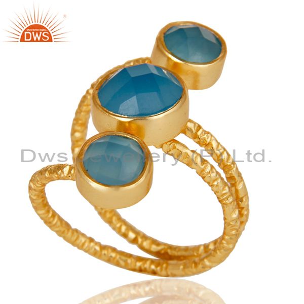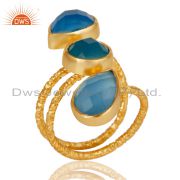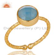 Chalcedony 925 Sterling Silver Prong Set Joint Ring with 18k Gold Plated