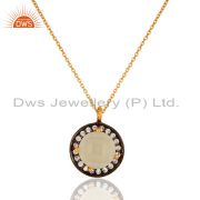 Chalcedony Gemstone Stacking Ring With Cz In Sterling Silver With Gold Plated