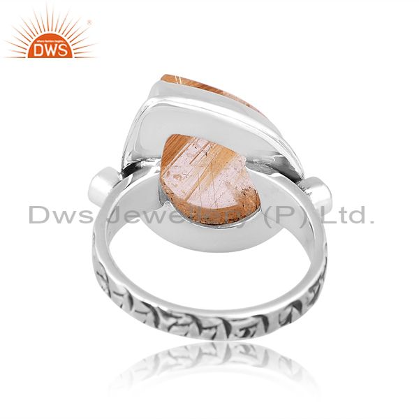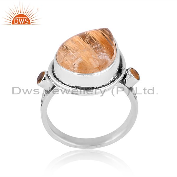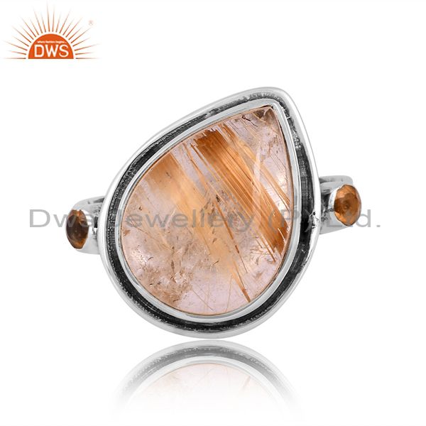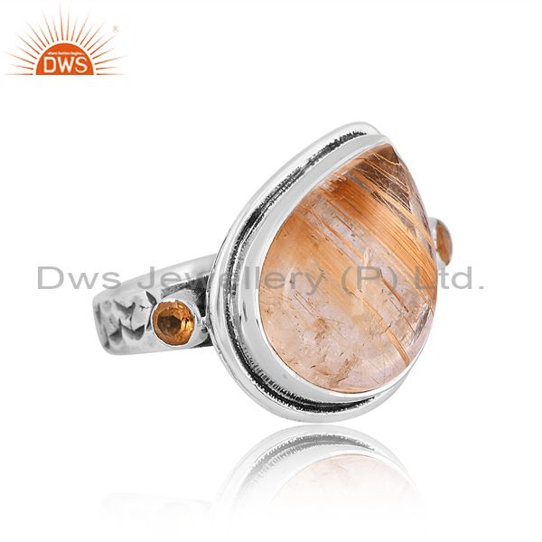 Citrine & Golden Rutile Combined Oxidized Sterling Ring